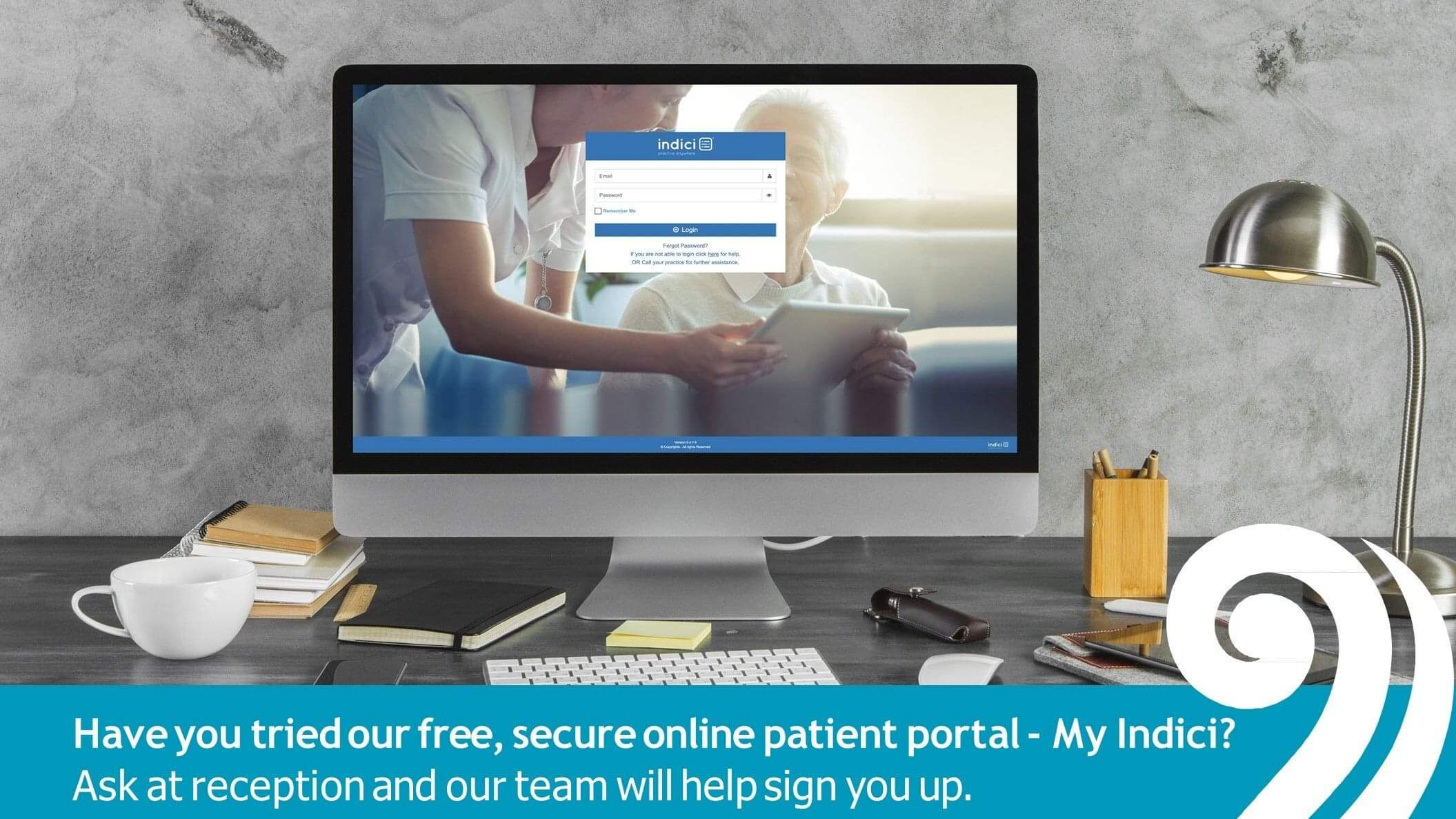 Ask one of our friendly receptionists to help sign you up to our FREE patient portal - MyIndici.